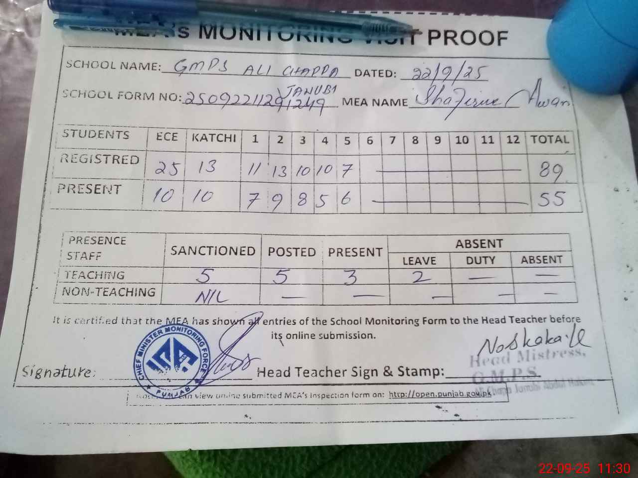 | EMIS Code: 36410595 | Name of School: GMPS ALI CHAPPA JANUBI | |||