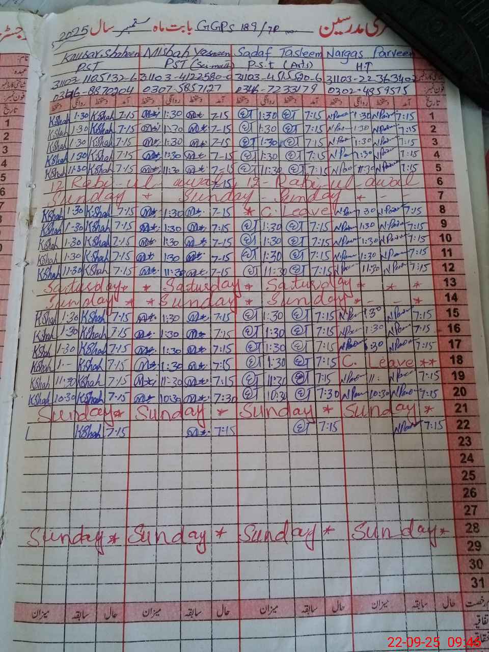 | CNIC | Full Name | Designation | R/C | Absence During Last Calender Month |
