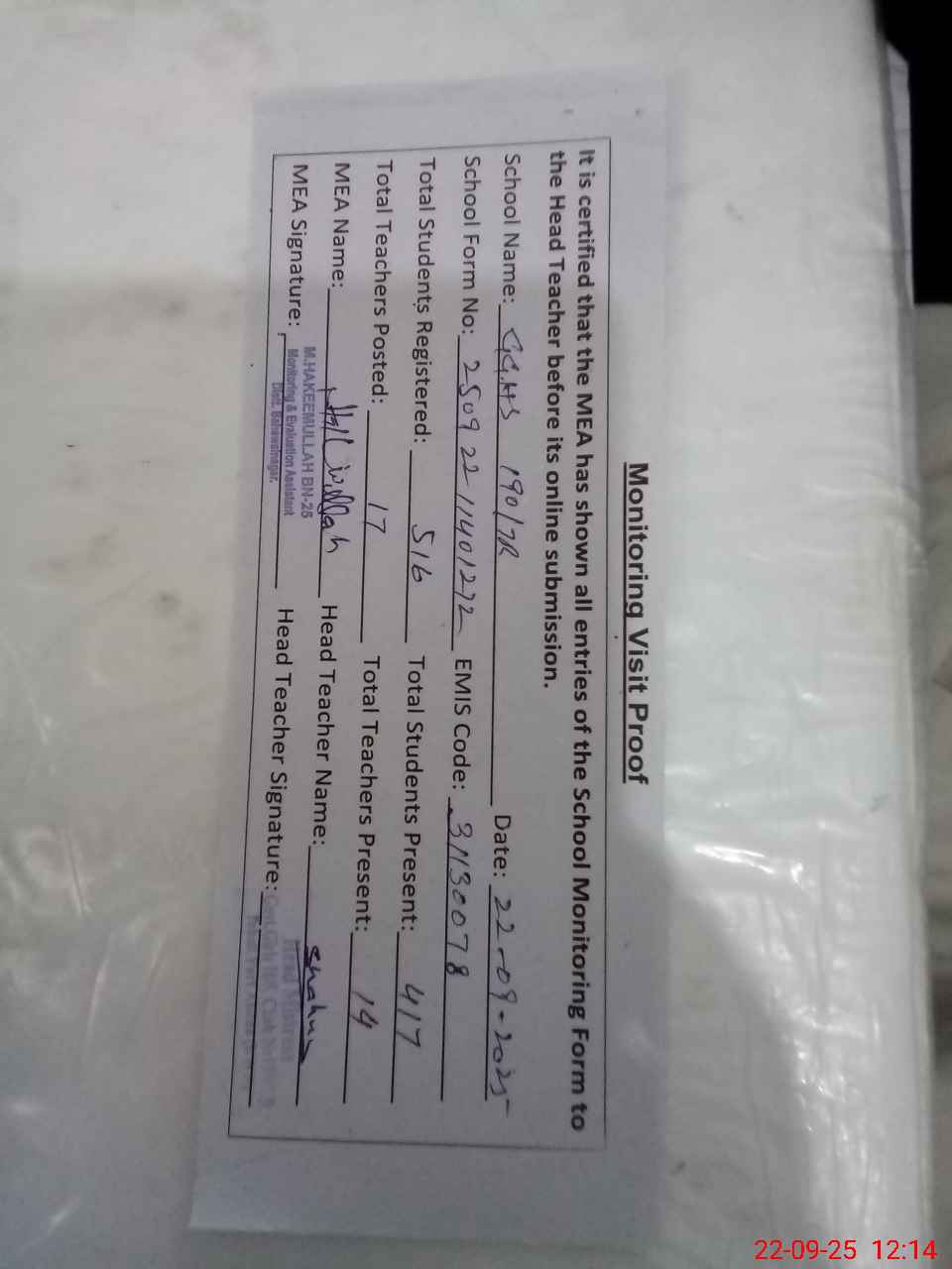 | EMIS Code: 31130078 | Name of School: GGHS CHAK NO 190/7-R | |||