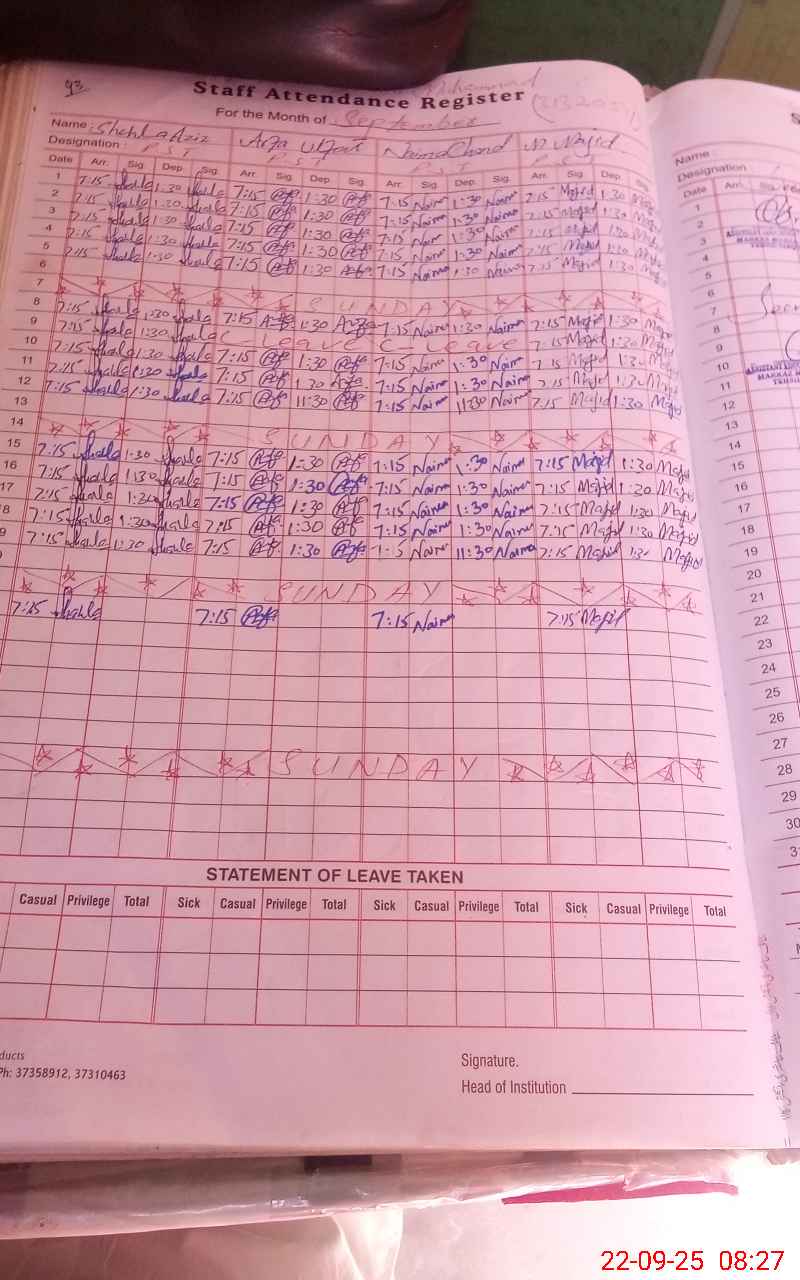 | Name: Sh**** Az**** Designation: (School Headmaster's/Headmistress's) PST Phone/Cell Number: 03**** |