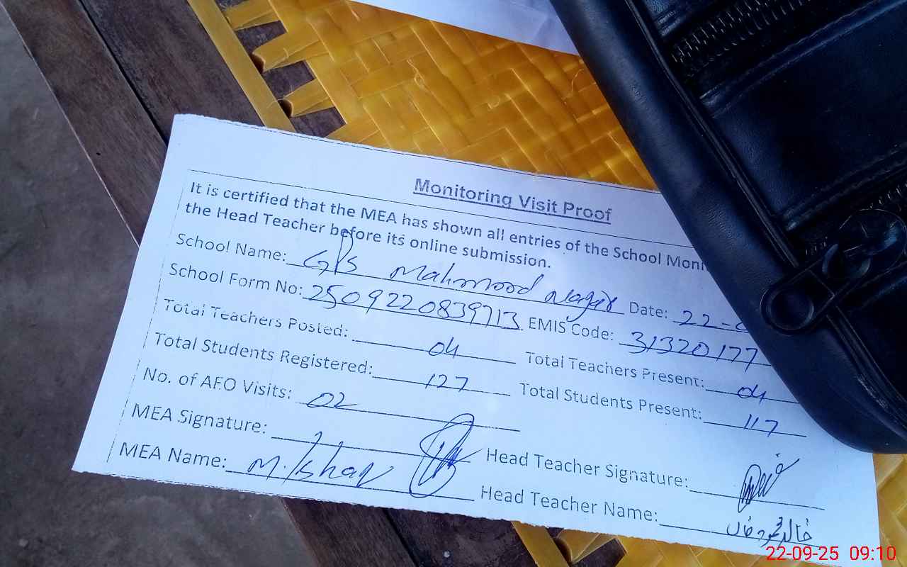 | Attendance Register | Head Teacher | MEA with School | Visit Proof |
