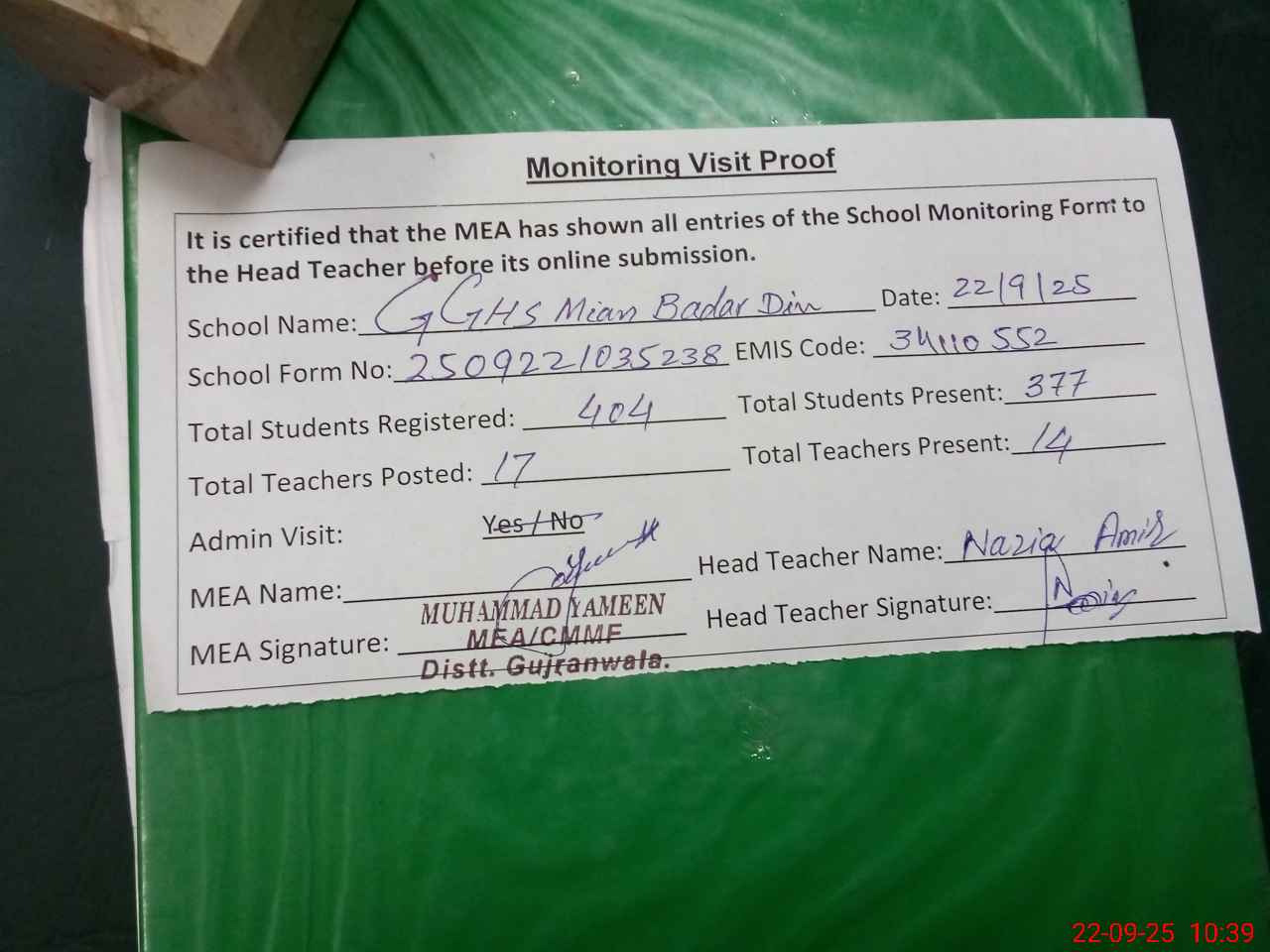 | EMIS Code: 34110552 | Name of School: GGHS MIAN BADAR-UD-DIN CIVIL LINE | |||