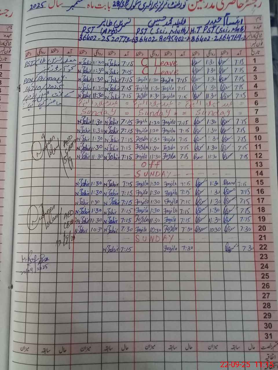 | CNIC | Full Name | Designation | R/C | Absence During Last Calender Month |