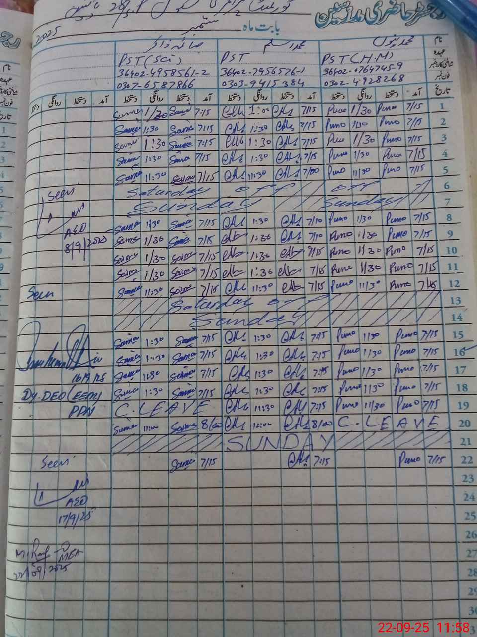 | Name: MU**** PU**** Designation: (School Headmaster's/Headmistress's) PST Phone/Cell Number: 03**** |