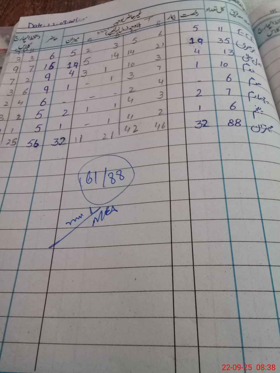 | Total Students Present | 9 | 0 | 18 | 9 | 9 | 6 | 5 | 5 | 61 | |||||||