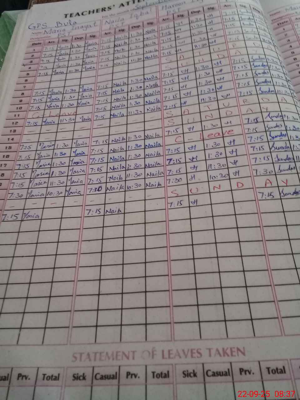 | Leave | Duty | Absent | Maternity | Medical | Ex- Pak |