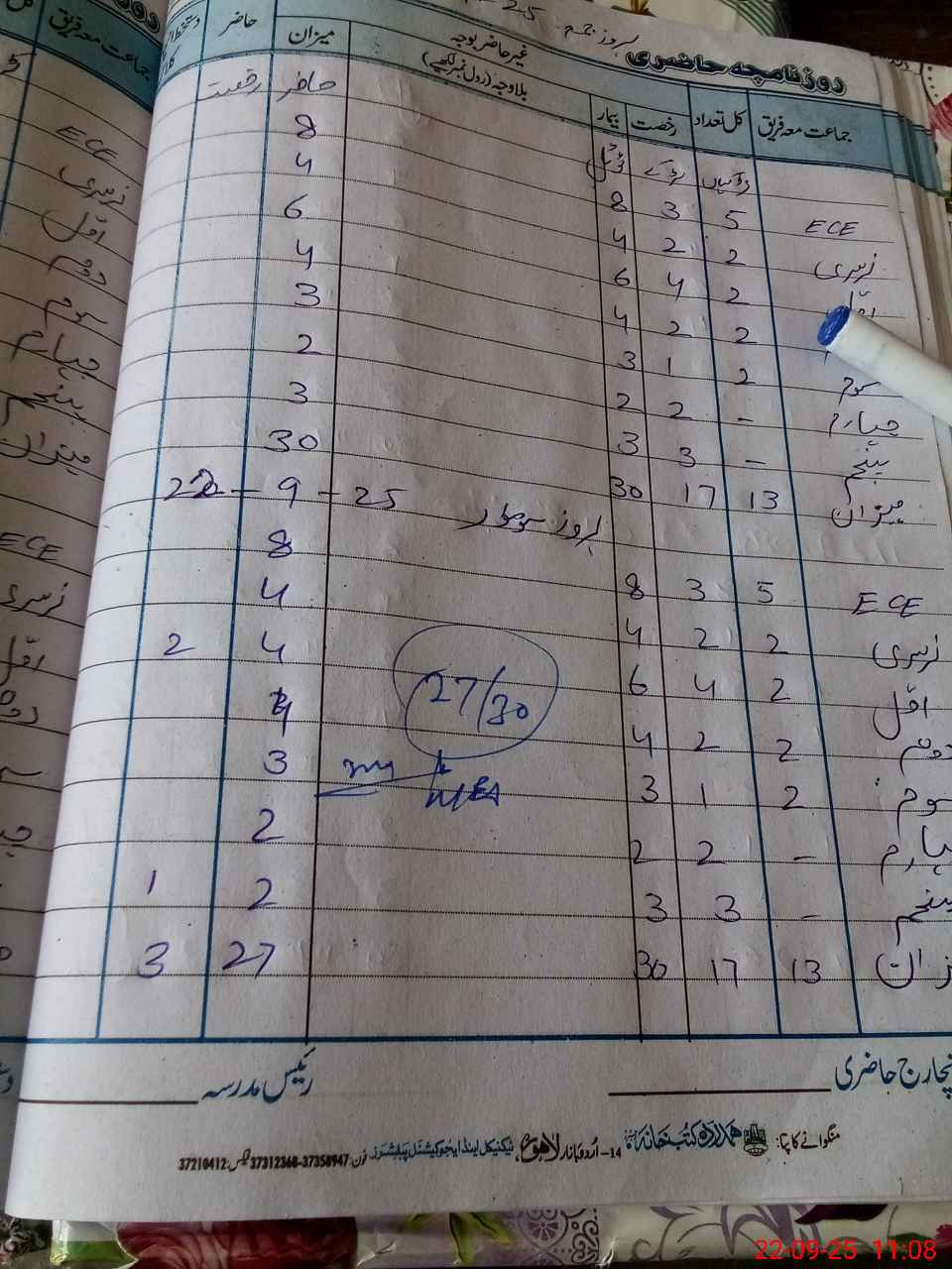| CNIC | Full Name | Designation | R/C | Absence during last cal. month |