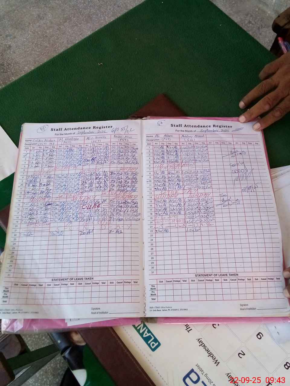 | CNIC | Full Name | Designation | R/C | Absence During Last Calender Month |