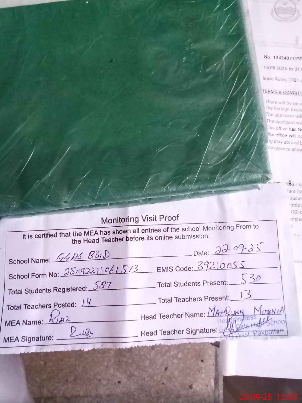 | EMIS Code: 39210055 | Name of School: GGHS 83 D | |||