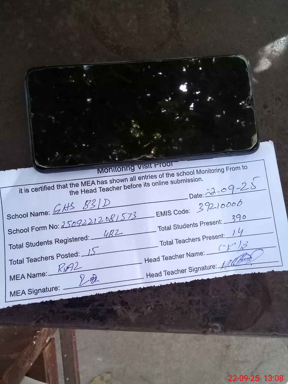 | Attendance Register | Head Teacher | MEA with School | Visit Proof |