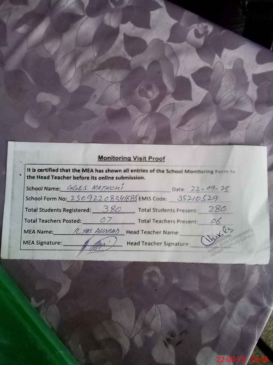 | EMIS Code: 35210529 | Name of School: GGES NATHOKI | |||