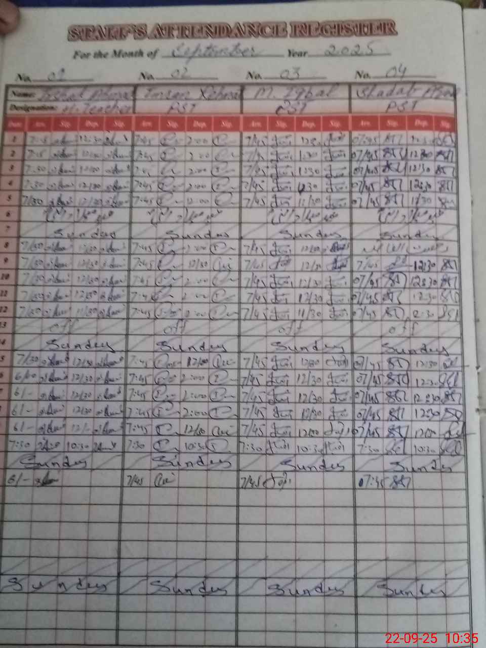 | Name: Ir**** Ah**** Designation: (School Headmaster's/Headmistress's) PST/PTC/JV Phone/Cell Number: 03**** |