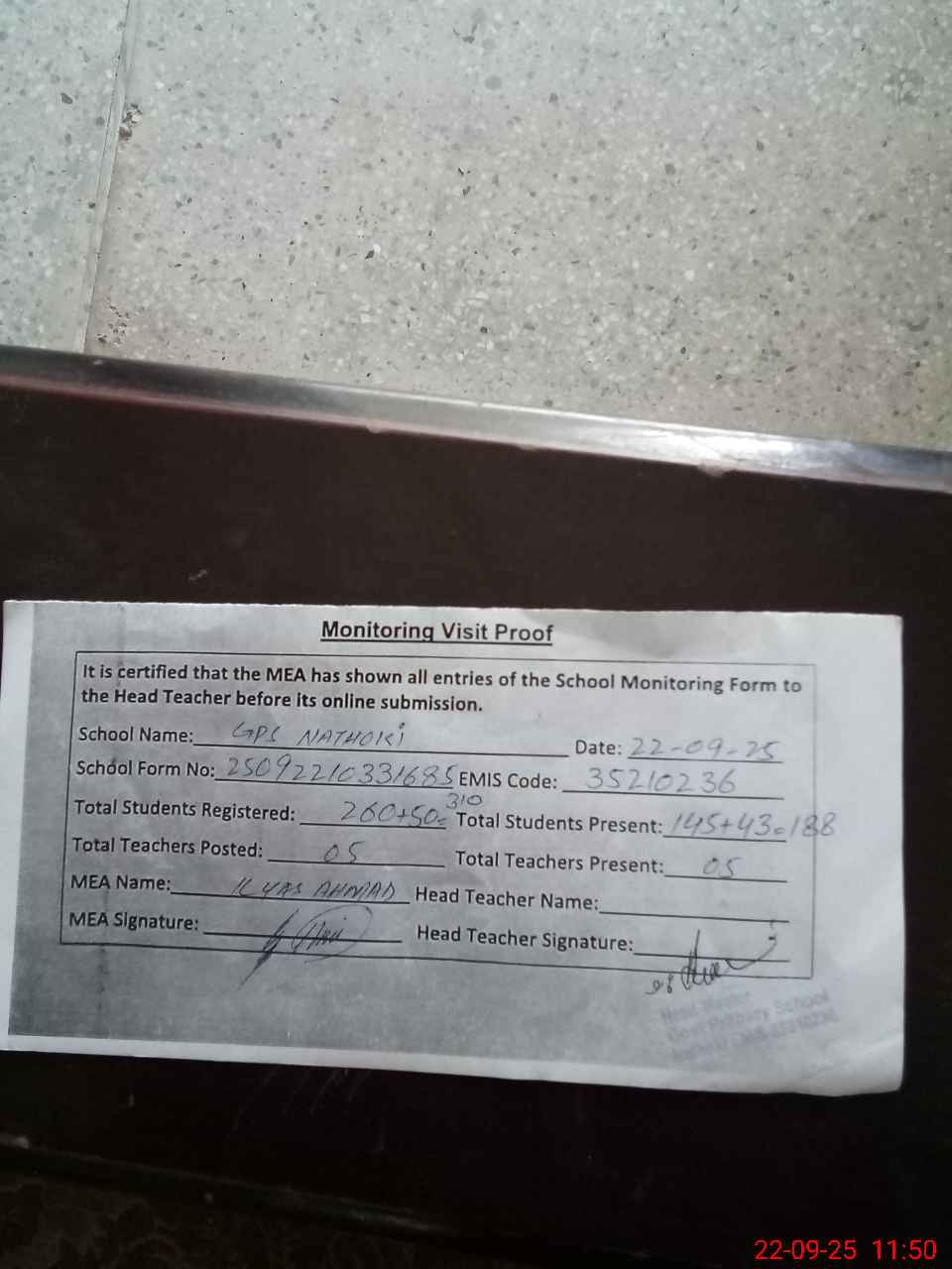 | EMIS Code: 35210236 | Name of School: GPS NATHOKI | |||