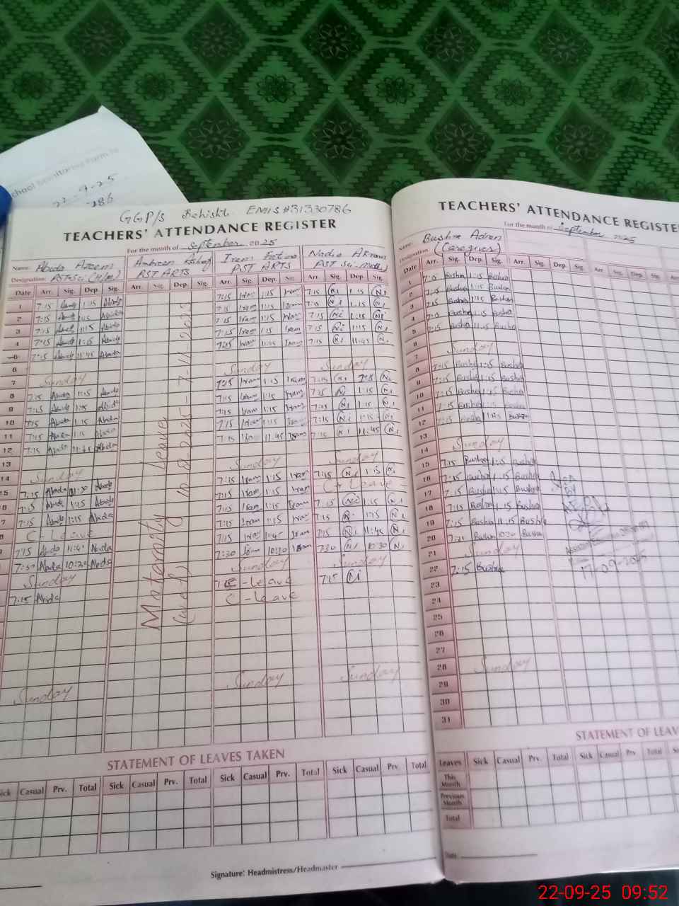 | EMIS Code: 31330786 | Name of School: GGPS BAHISHTI | |||