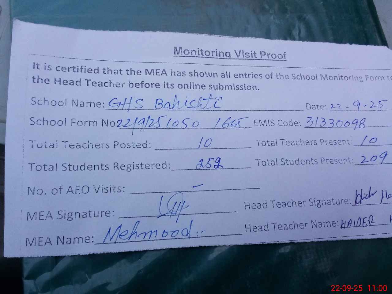| EMIS Code: 31330098 | Name of School: GHS BAHISHTI | |||