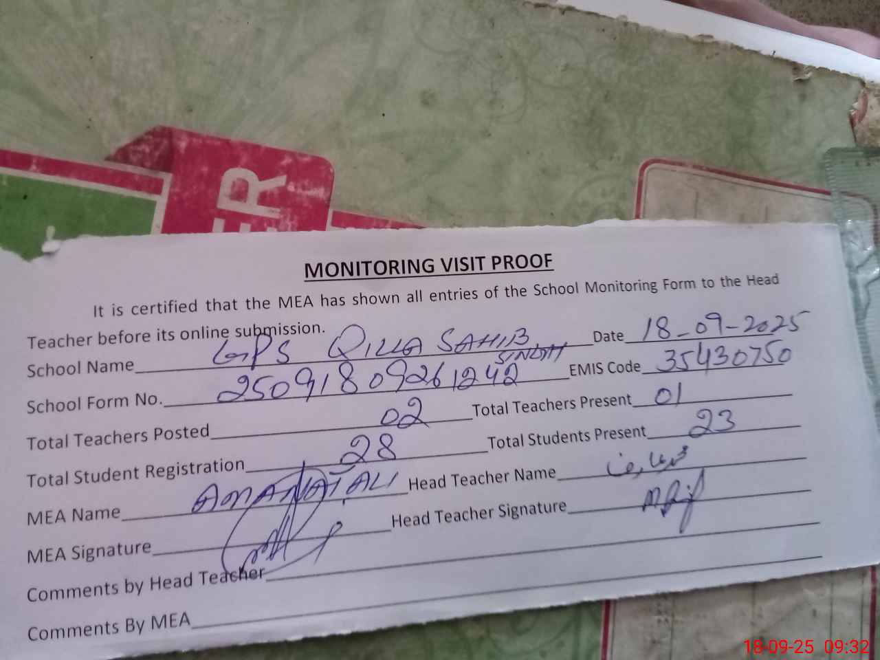 | EMIS Code: 35430750 | Name of School: GGPS QILA SAHIB SINGH | |||