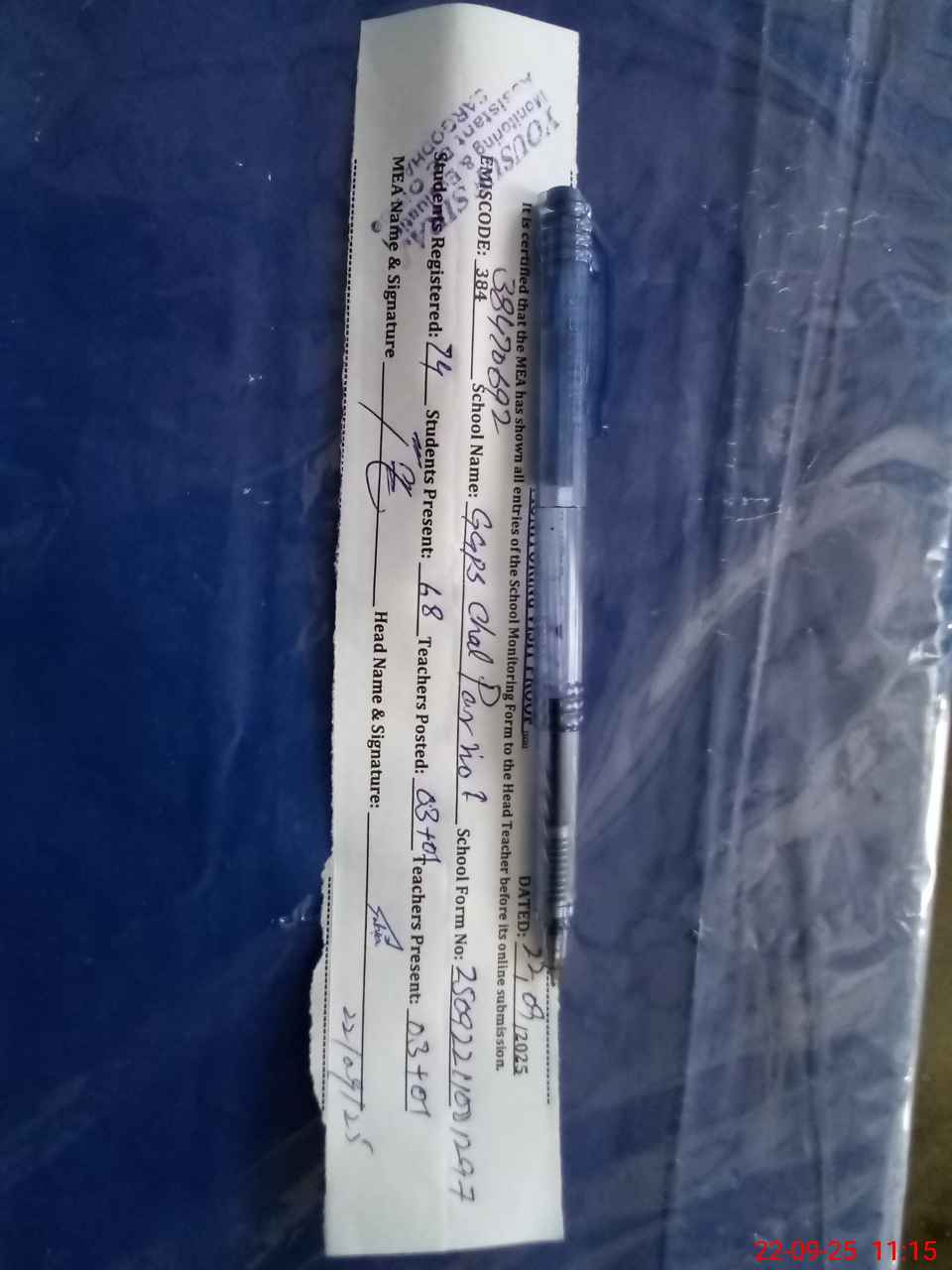 | Certified that this School was Inspected by the Undersigned MEA/DMO Today and the Information Stated Above is as Per Record. | |||||