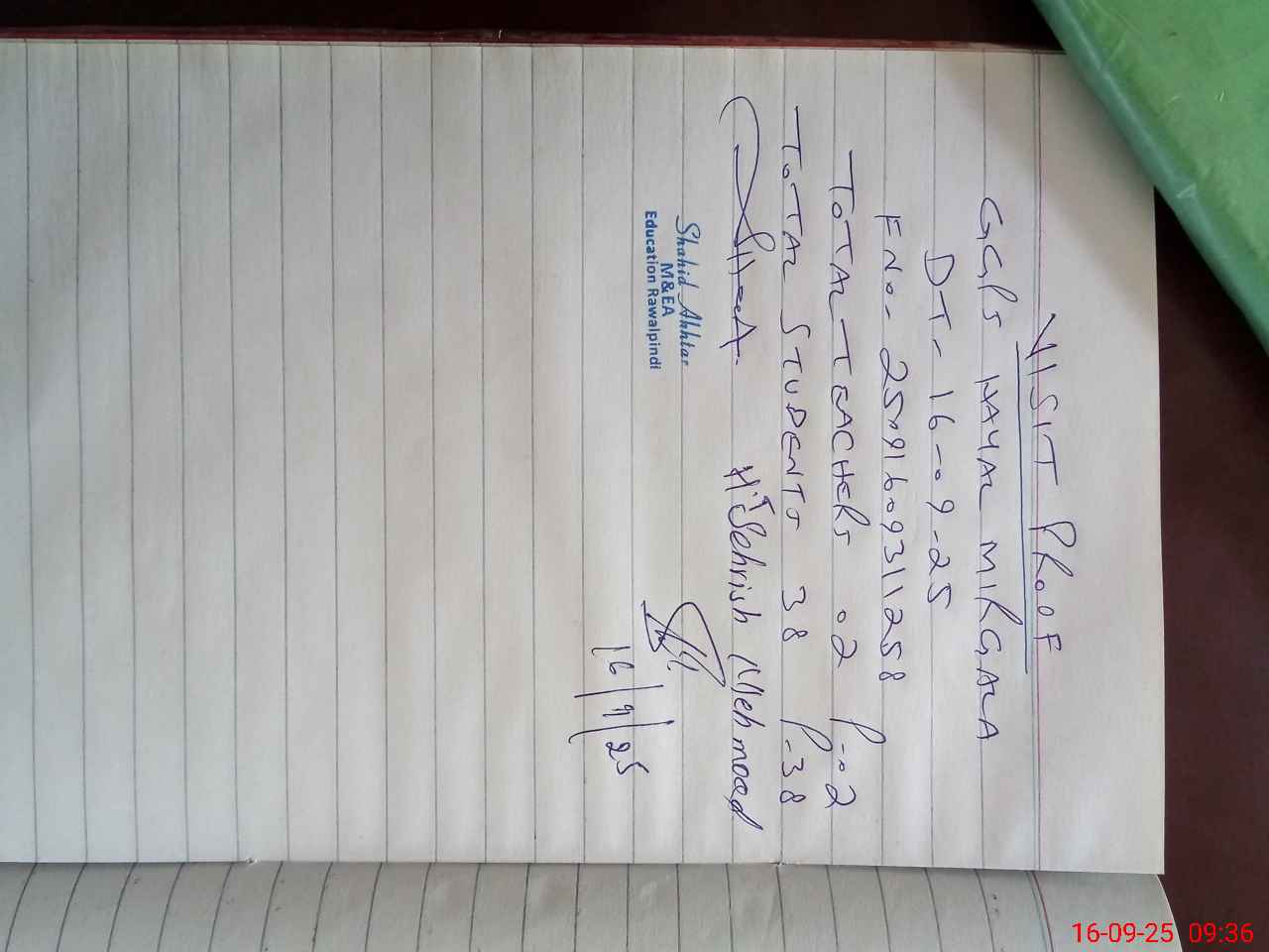 | Attendance Register | Head Teacher | MEA with School | Visit Proof |