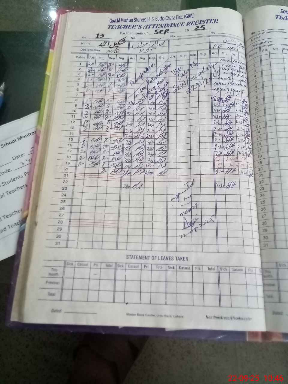 | Name: AB**** HU**** Designation: (School Headmaster's/Headmistress's) SST (INCHARGE) Phone/Cell Number: 03**** |