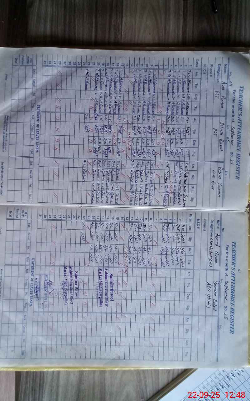 | CNIC | Full Name | Designation | R/C | Absence During Last Calender Month |