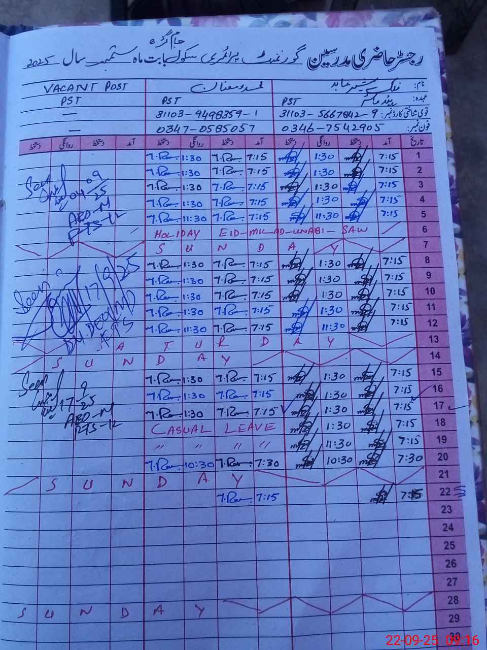 | Name: FA**** SH**** Designation: (School Headmaster's/Headmistress's) PTC/JV Phone/Cell Number: 03**** |