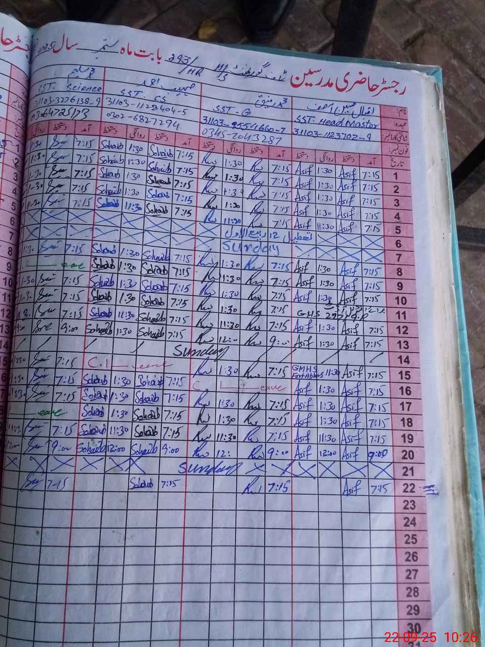 | Name: IQ**** HU**** Designation: (School Headmaster's/Headmistress's) S.S.T.(Arts) Phone/Cell Number: 03**** |