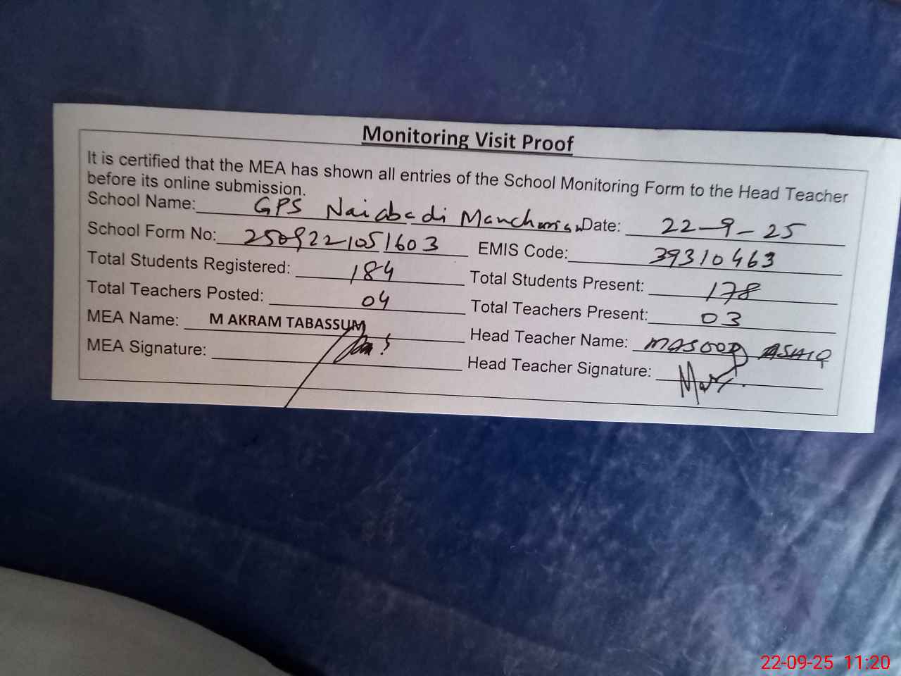 | EMIS Code: 39310463 | Name of School: GPS NAI ABADI MANCHRIAN | |||
