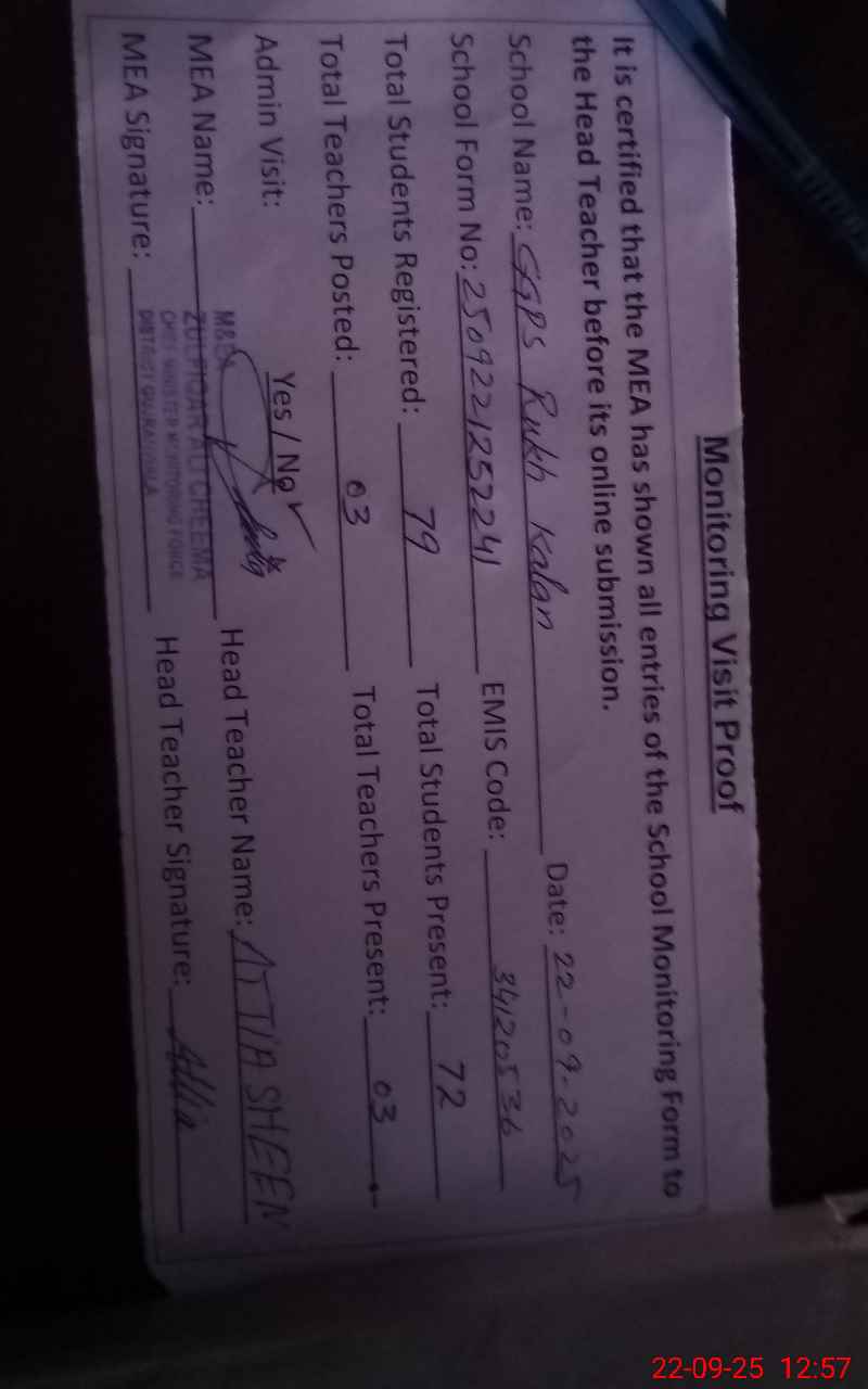 | EMIS Code: 34120536 | Name of School: GGPS RUKH KALAN | |||