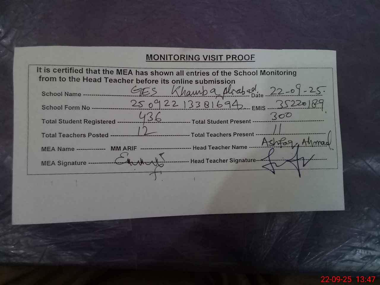 | EMIS Code: 35220189 | Name of School: GES KHAMBA ALI RAZA ABAD (Neshaman-e-Iqbal) | |||