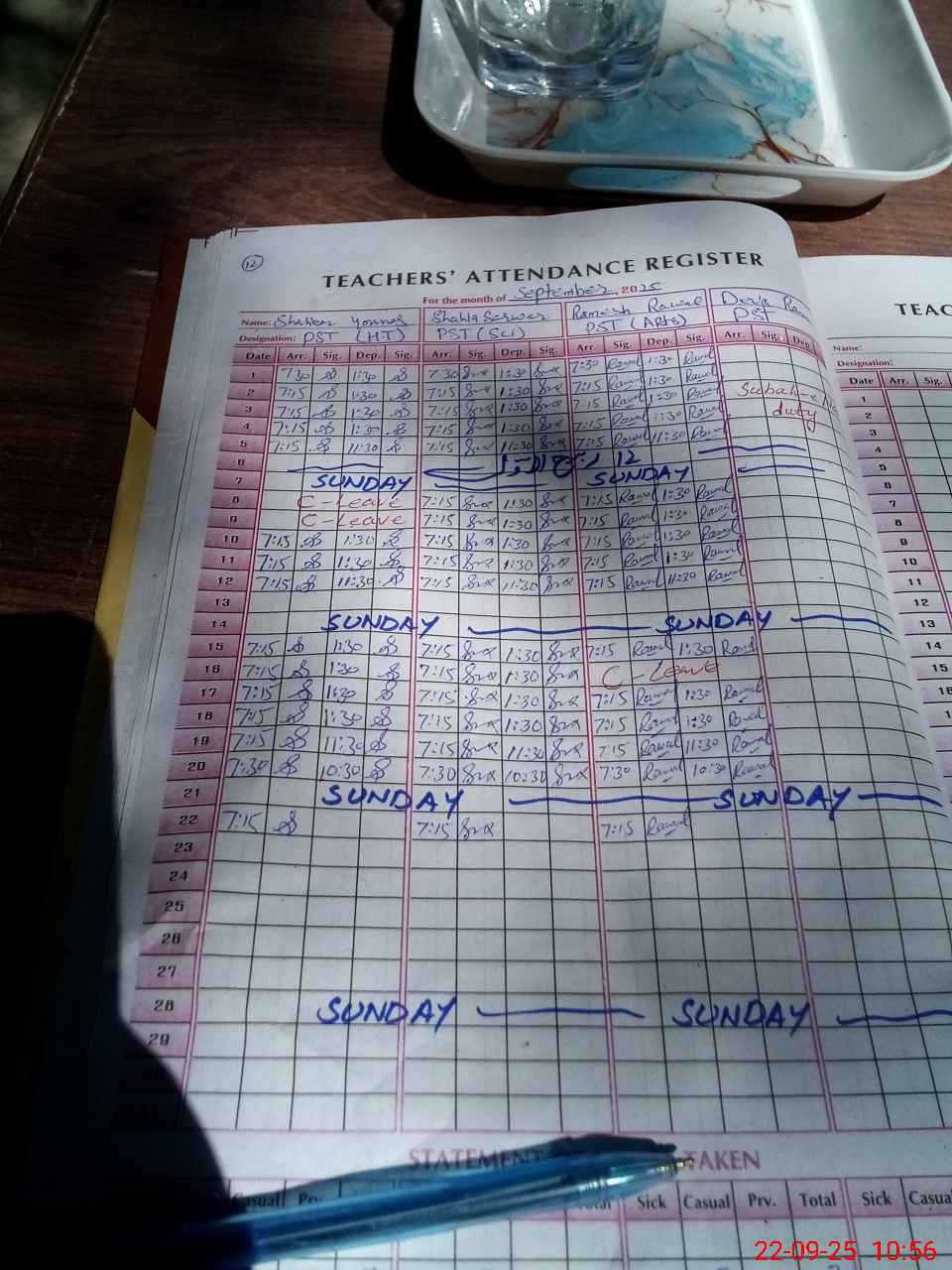 | CNIC | Full Name | Designation | R/C | Absence during last cal. month |