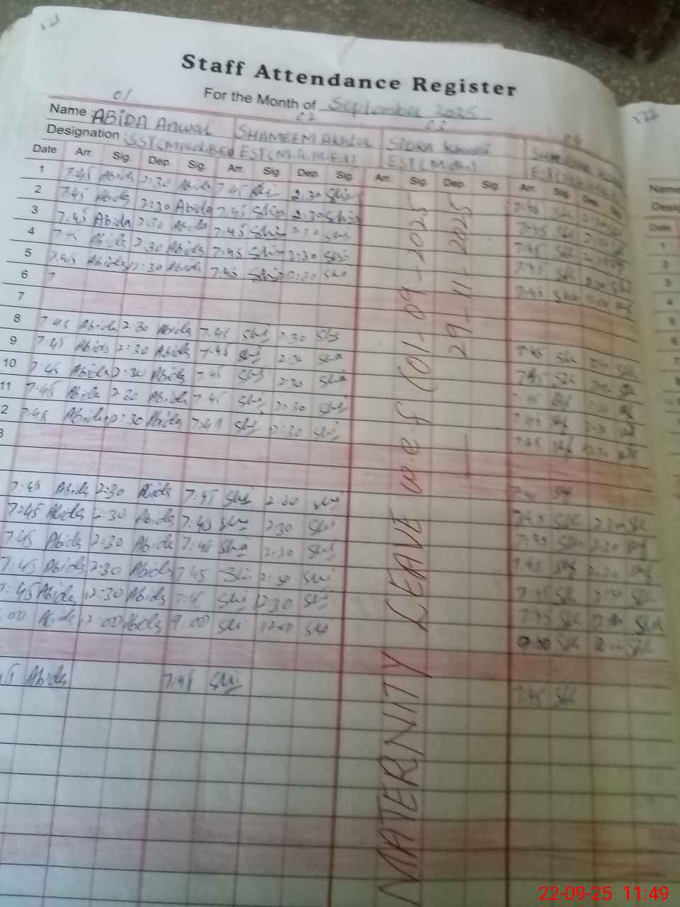 | 36**** | Sh**** Ka**** | PST | Regular | 0 | 0 | 0 | 0 | 0 | 0 | 0 | 0 | 0 | Maternity |