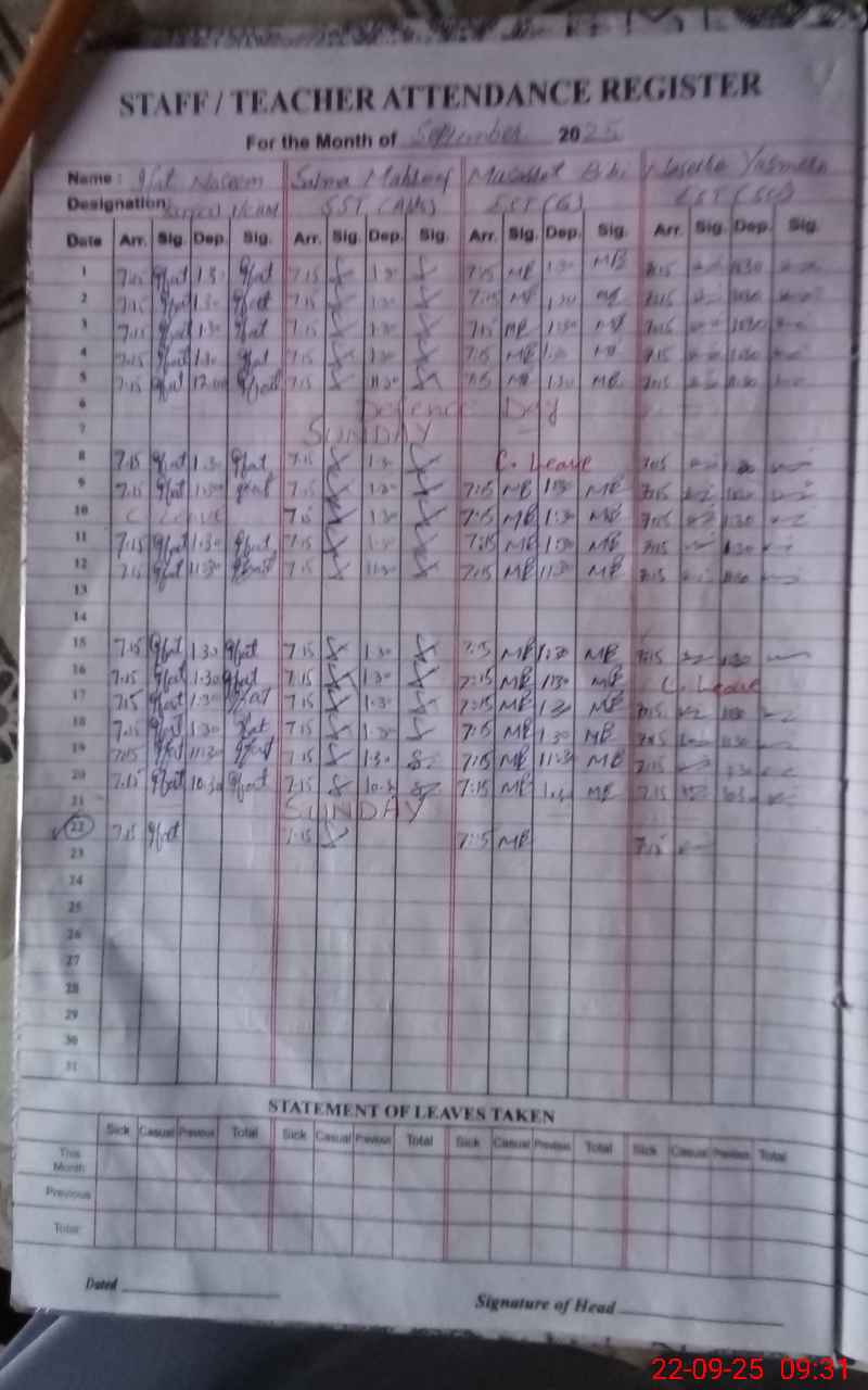 | 37**** | Mu**** Kh**** Jh**** | J C | Regular | 0 | 0 | 0 | 0 | 0 | 0 | 0 | 0 | 0 | Absent (Un-Authorized) |