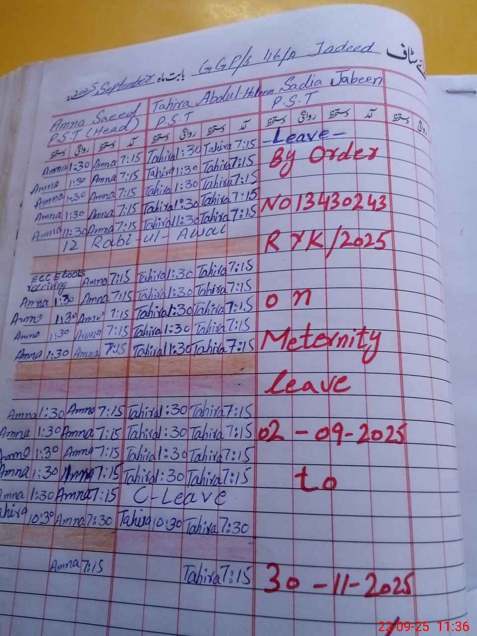 | Leave | Duty | Absent | Maternity | Medical | Ex- Pak |