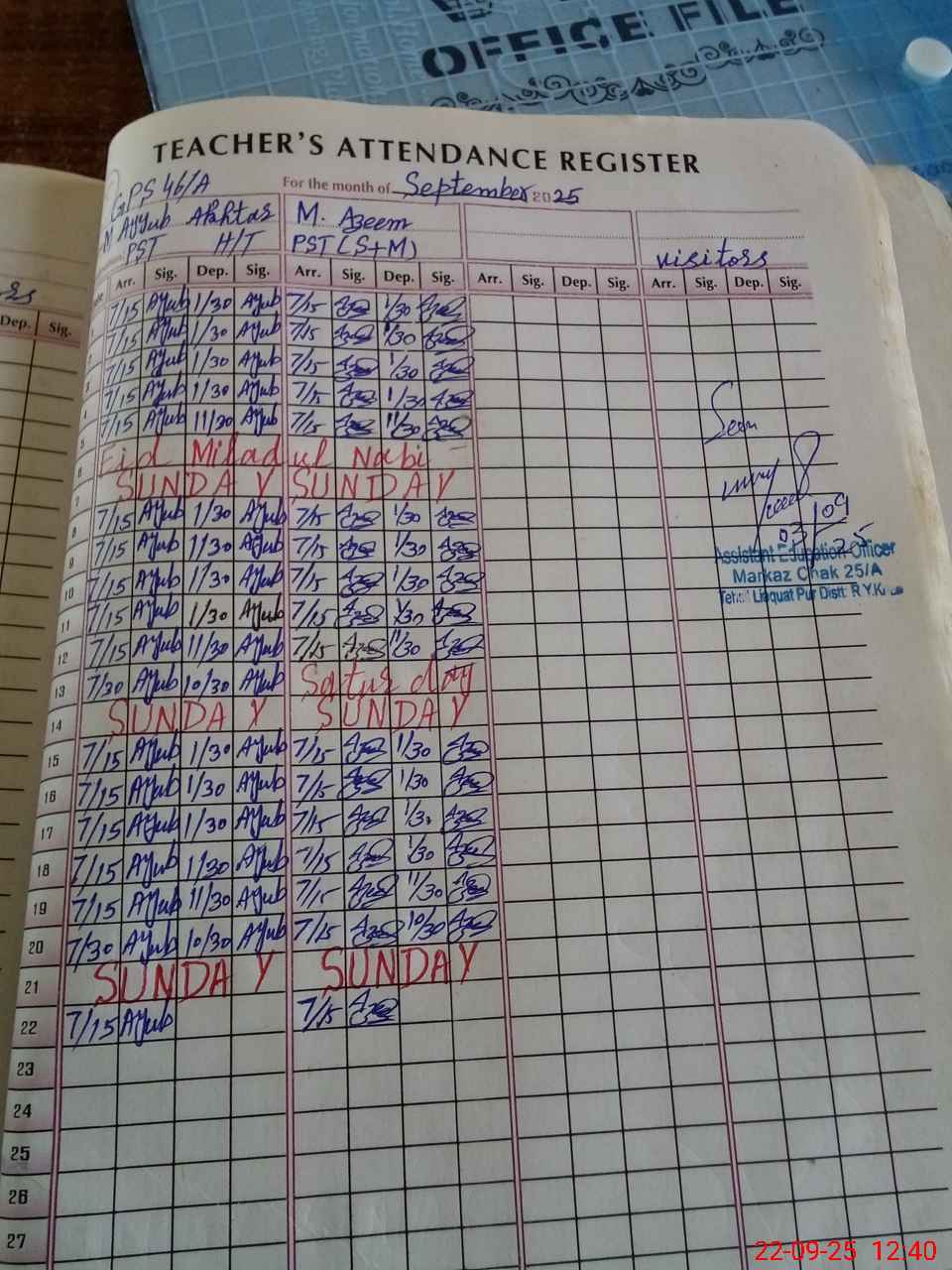 | District: RAHIMYAR KHAN | Tehsil: LIAQATPUR | Markaz: CHAK 25/A-MALE | Level: Primary | |
