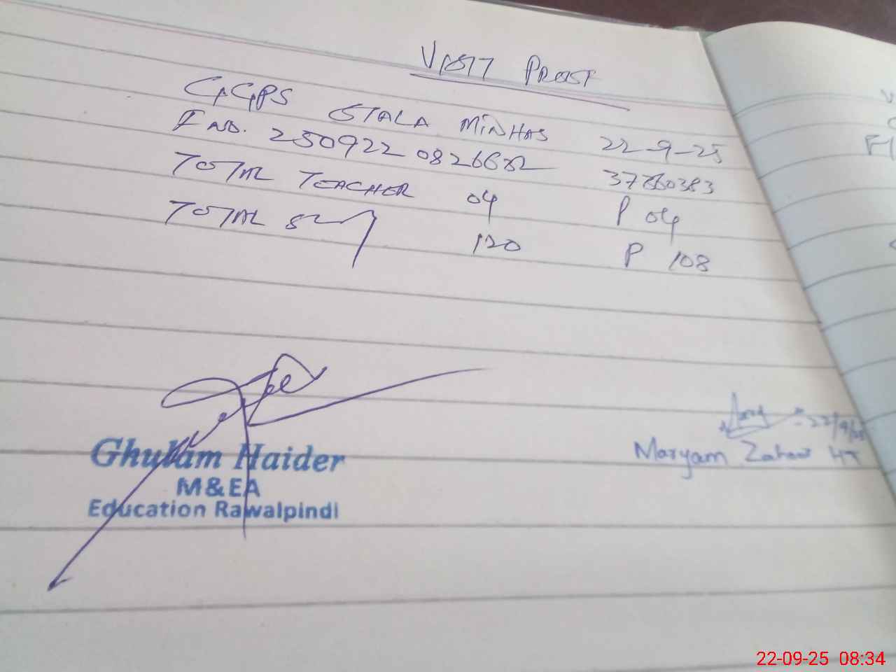| Name: MA**** ZA**** Designation: (School Headmaster's/Headmistress's) ESE Arts Phone/Cell Number: 03**** |