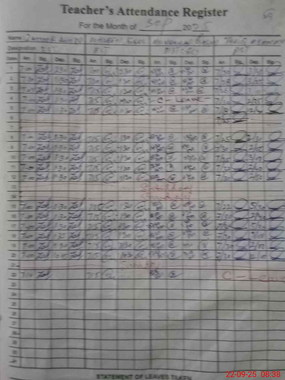 | CNIC | Full Name | Designation | R/C | Absence During Last Calender Month |