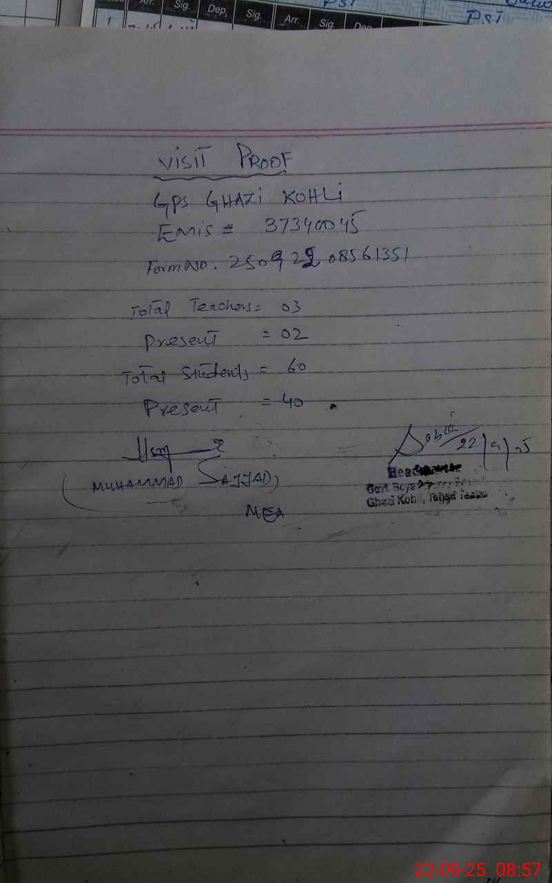 | EMIS Code: 37340045 | Name of School: GPS GHAZI KOHLI | |||