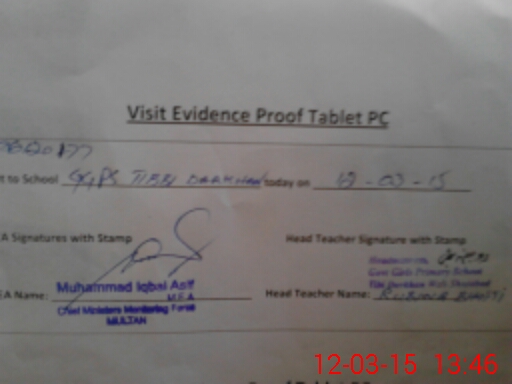 | Attendance Register | Head Teacher | MEA with School | Visit Proof |