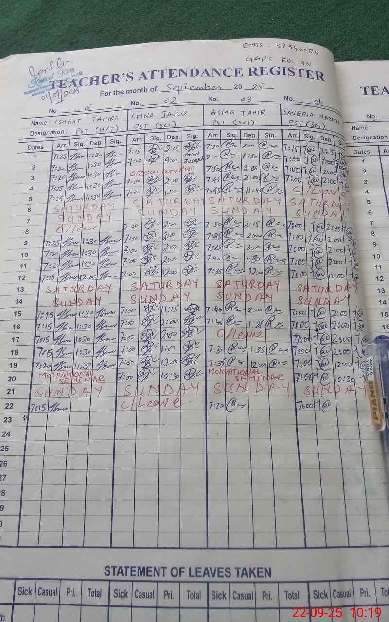 | Attendance Register | Head Teacher | MEA with School | Visit Proof |