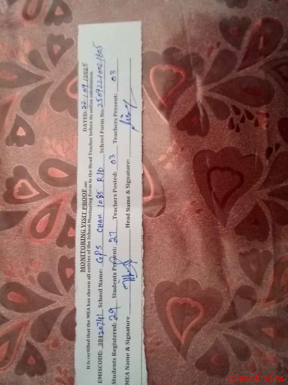 | EMIS Code: 38420741 | Name of School: GGPS CHAK NO.10/85 REMOUNT DEPOT | |||