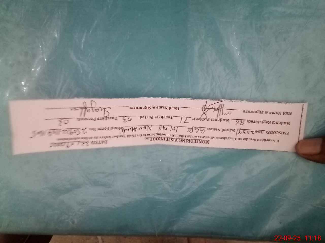 | Monitoring Date: 22-09-2025 | Start Time: 22-09-2025 11:04 AM | End Time: 22-09-2025 11:59 AM | Name of MEA: MU**** AH**** | |