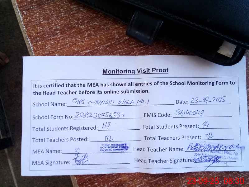 | EMIS Code: 36140048 | Name of School: GPS MUNSHI WALA P/O JUGGU WALA | |||