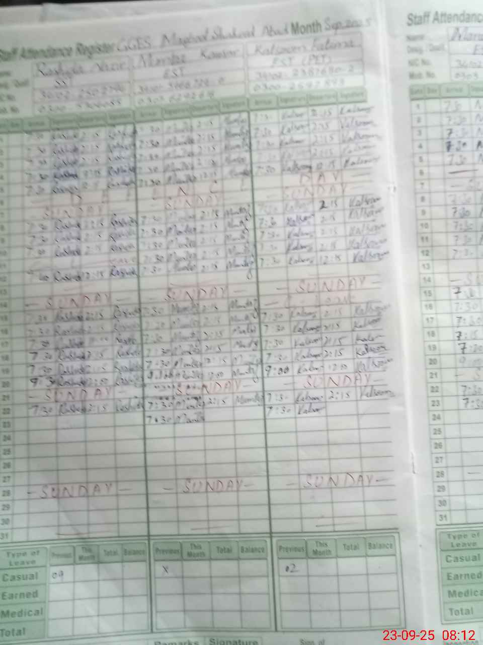 | CNIC | Full Name | Designation | R/C | Absence During Last Calender Month |