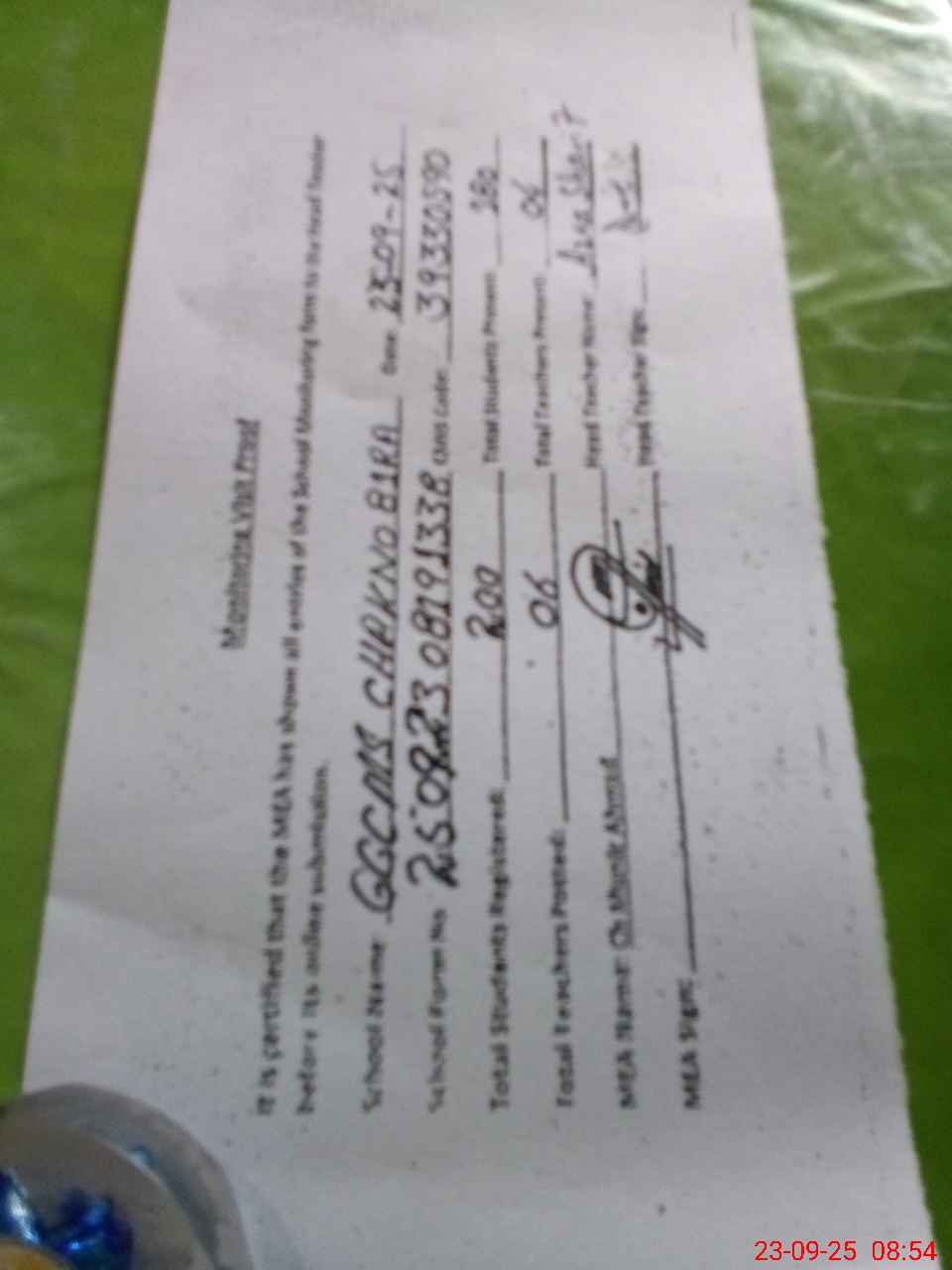 | Attendance Register | Head Teacher | MEA with School | Visit Proof |