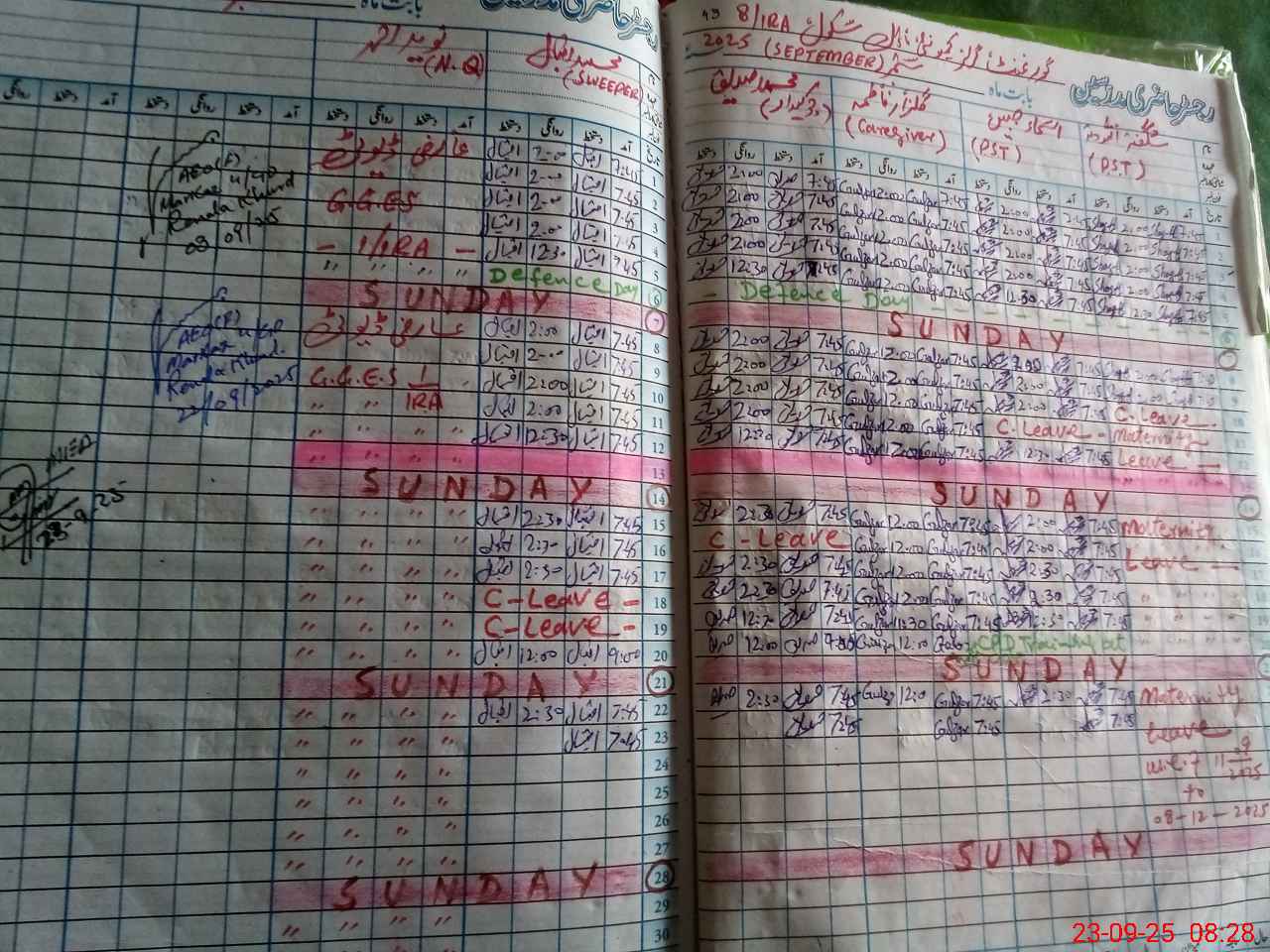 | Leave | Duty | Absent | Maternity | Medical | Ex- Pak |