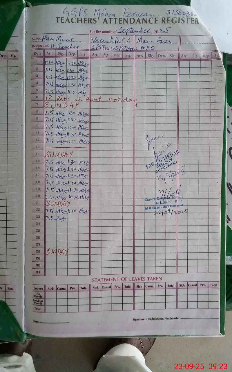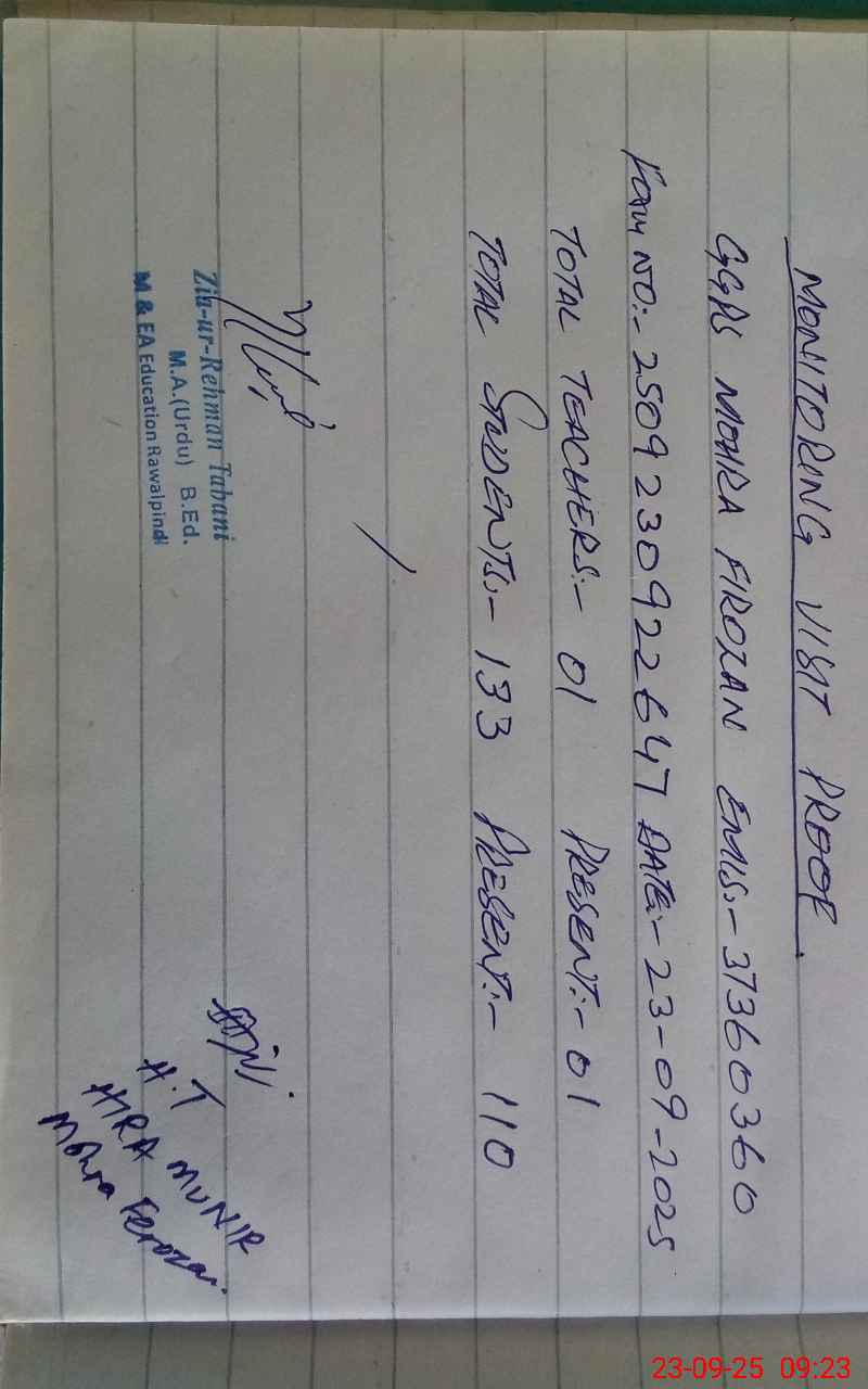 | EMIS Code: 37360360 | Name of School: GGPS MOHRA FIROZAN | |||