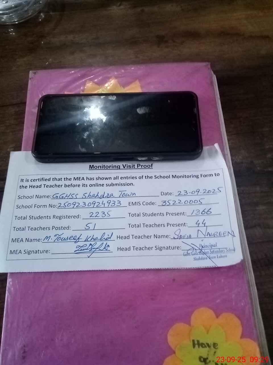 | EMIS Code: 35220005 | Name of School: GGHSS SHAHDRA TOWN, LAHORE | |||