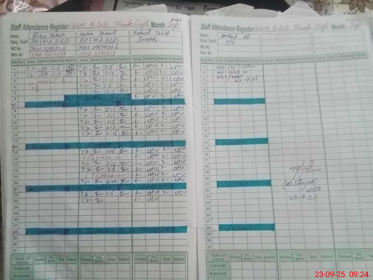 | Name: Fa**** Ba**** Designation: (School Headmaster's/Headmistress's) SST Phone/Cell Number: 03**** |