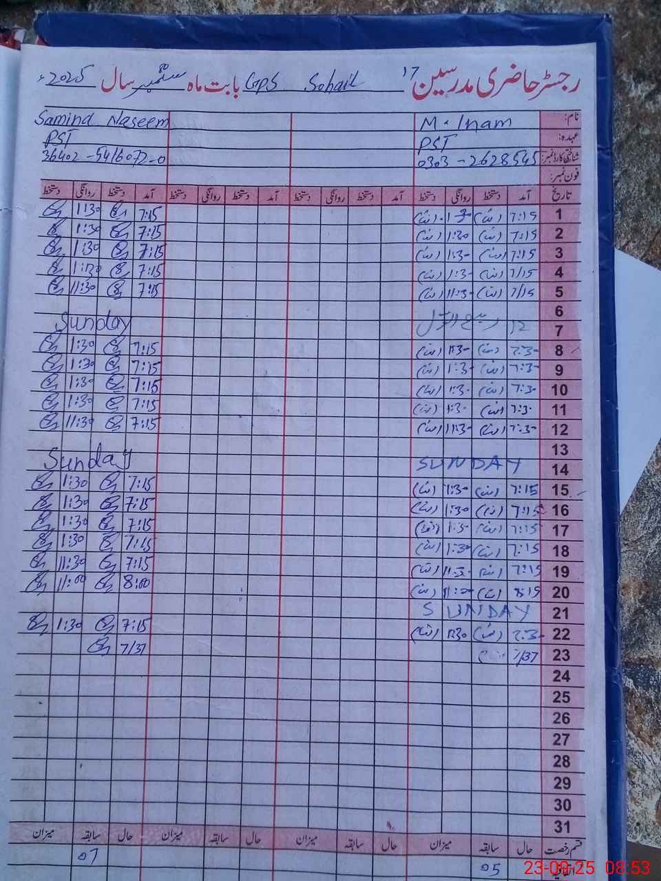 | Name: MU**** IN**** Designation: (School Headmaster's/Headmistress's) PST Phone/Cell Number: 03**** |