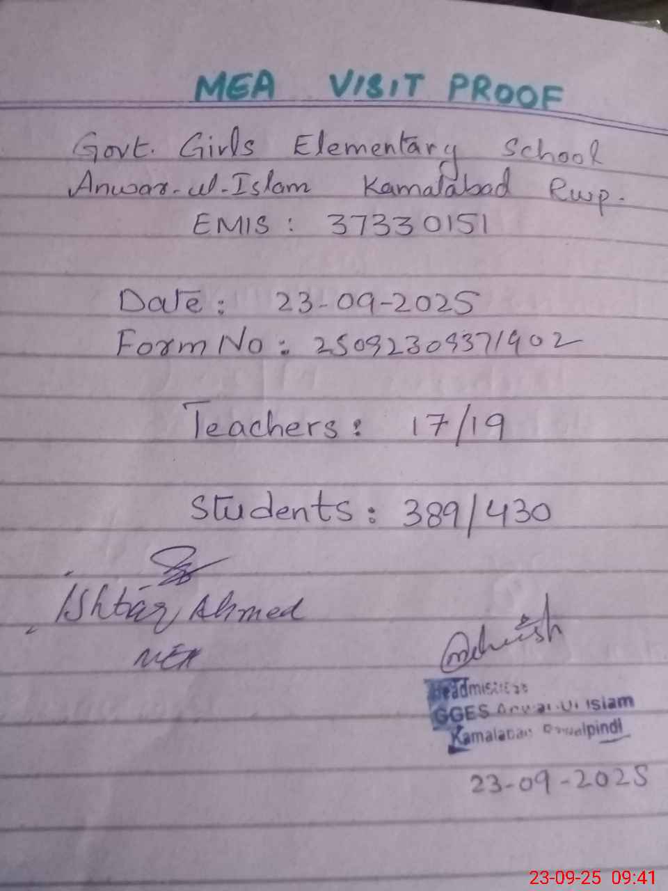 | EMIS Code: 37330151 | Name of School: GGES ANWAR UL ISLAM KAMALABAD | |||